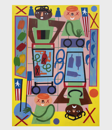 Nina Chanel Abney née en 1982 est une voix singulière de sa génération. Cette artiste afro américaine diplômée de la Parsons Shool of Design, brouille les frontières entre humour et horreur, figuratif et abstrait, spectacle public et psychologie intime. Ses compositions d’une audace graphiques saisissante reflète non seulement le désastre écologique, mais aussi les conséquences psychologiques plus larges de notre époque.