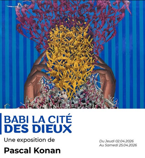 Parmi les lieux du programme, La Rotonde des Arts accueille une exposition des artistes du centre d’art contemporain Les Ateliers Sahm, venu de Brazzaville. À noter également que Babi, la cité des dIEUX de Pascal Konan, présentée à la galerie Houkami Guyzagn, s’inscrit dans le cadre de cette édition 2026.