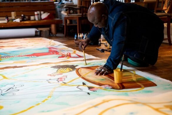 Son œuvre, ici encore, témoigne de cette volonté constante d’explorer les liens profonds entre l’humain et le vivant. Sans s’y référer directement, elle semble faire écho à la pensée du Tout-Monde d’Édouard Glissant : un monde en relation, en archipel, où les identités se composent, se répondent, s’hybrident, loin des cloisonnements et des hiérarchies imposées. Et chez Toguo, l’art devient traversée, dialogue et rencontre. Un espace de réenchantement possible du monde.